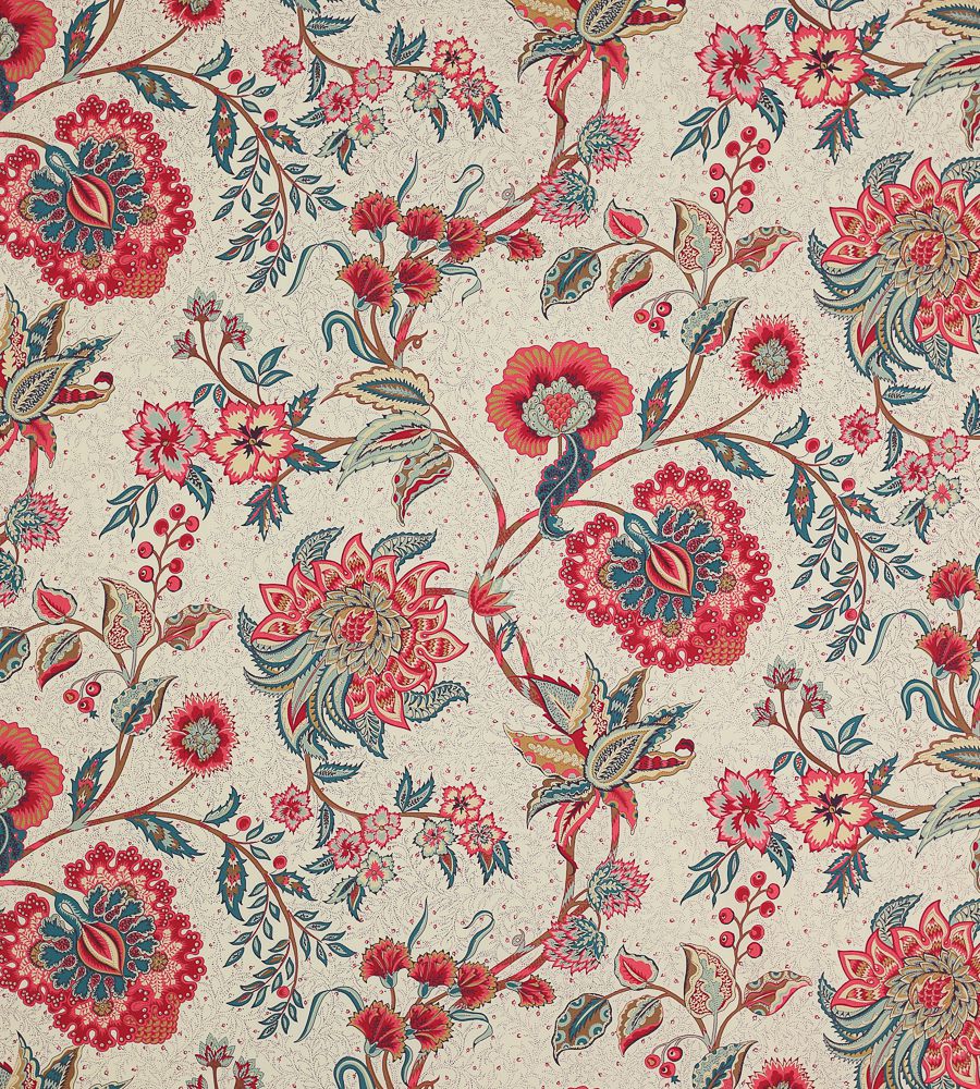 Manuel Canovas Manoir Garance virágmintás textil. Manuel Canovas a látványos minták és élénk színek mestere, számos lakástextil és tapéta kollekció megálmodója. A kezdetek óta mindegyik kollekciója hatalmas sikert arat. Jellemző színeinek és egzotikus mintáinak köszönhetően a stílusa utánozhatatlan és azonnal felismerhető. Manuel Canovas a neves angol Colefax & Fowler gyártóval működik együtt, aki világszerte forgalmazza a szöveteit és a tapétait.