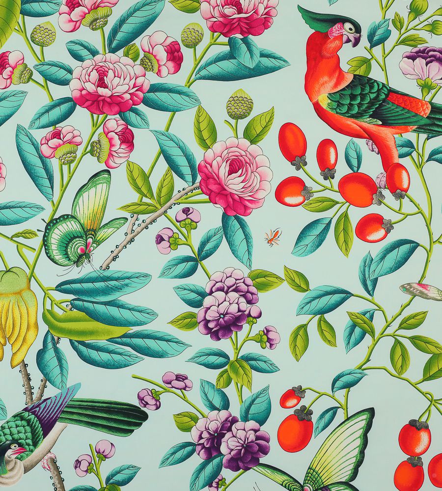 Manuel Canovas Serendip Turquoise madár mintás textil. Manuel Canovas a látványos minták és élénk színek mestere, számos lakástextil és tapéta kollekció megálmodója. A kezdetek óta mindegyik kollekciója hatalmas sikert arat. Jellemző színeinek és egzotikus mintáinak köszönhetően a stílusa utánozhatatlan és azonnal felismerhető. Manuel Canovas a neves angol Colefax & Fowler gyártóval működik együtt, aki világszerte forgalmazza a szöveteit és a tapétait.