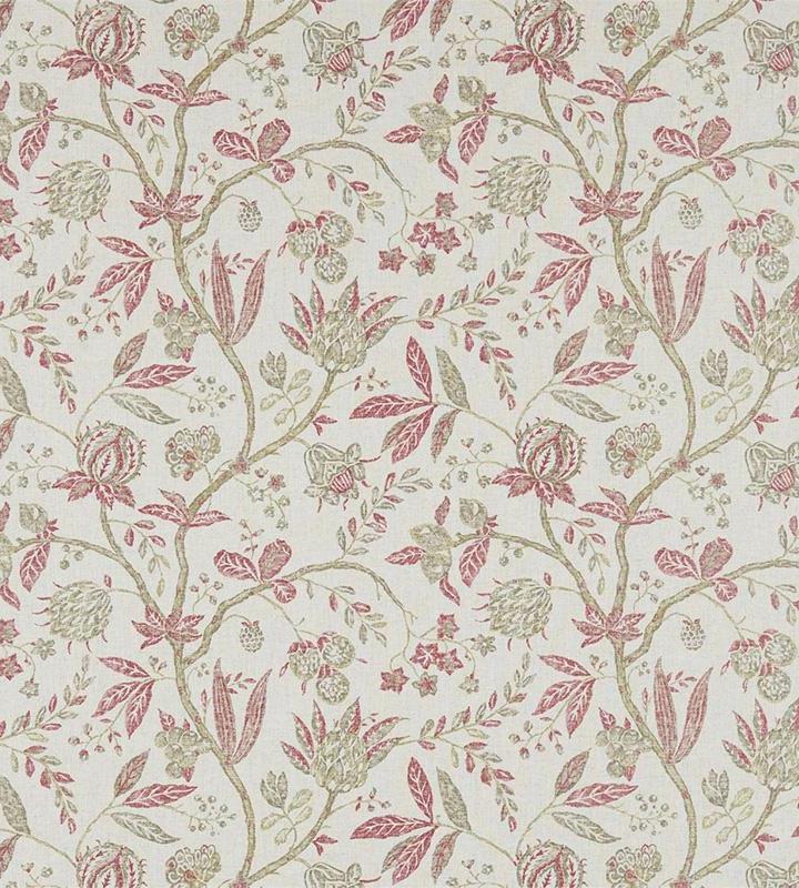 Sanderson Solaine Russet/Cream levél mintás textil. A Sanderson Fabienne texil kollekció klasszikus és kifinomult textileket tartalmaz, melyeket a gyönyörű francia vidéki kastélyok ihletették. Ebben a kollekcióban kézzel festett virág, levél és barokk mintás textileket és hímzett szöveteket találhatunk számos árnyalatban. A Fabienne kollekció egyik különlegessége az elegáns madár mintás Abbeville dekor és a luxuskivitelű hímzett Angelique textil. A Sanderson a textilekhez illő tapétákat is ajánl. Az anyagok alkalmazhatóak sötétítő és dekor függöny varrásra, takaró és díszpárna készítésre, valamint bútorkárpitozásra. A gazdag történelemmel rendelkező Sanderson a világ egyik legnevesebb textil és tapéta gyártója, amely rendelkezik az angol királyi udvar hivatalos beszállítója címmel. Leginkább a nyomott mintás tapétáiról és textiljeiről híres, de kínálatában prémium minőségű szőnyegek és lakás kiegészítők is találhatóak.