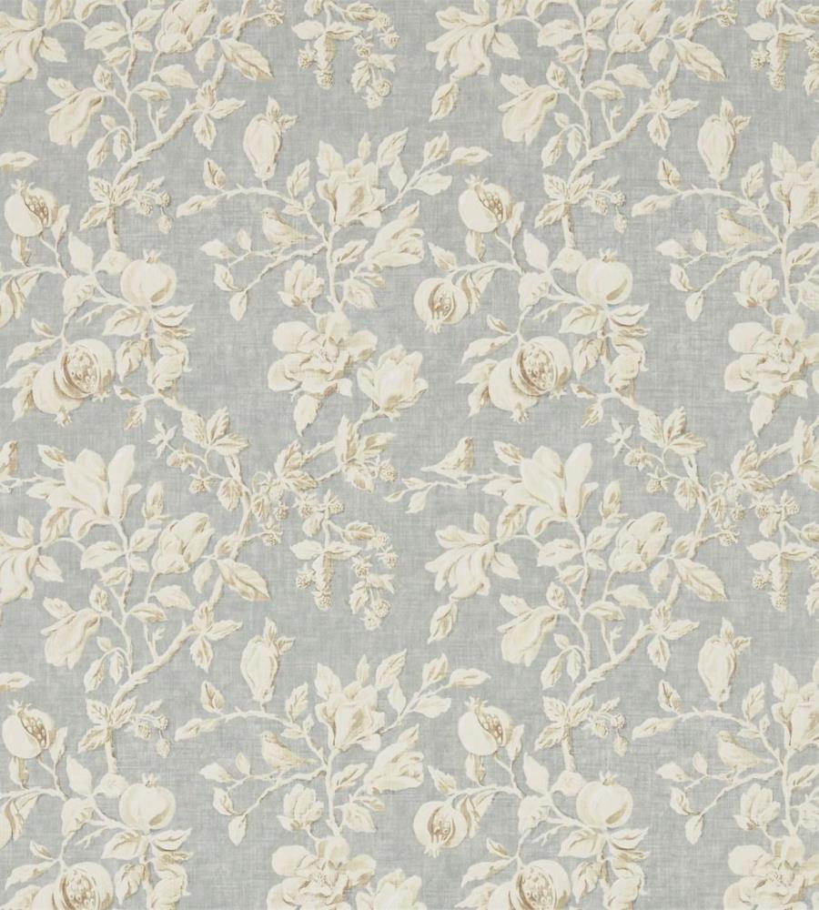 Sanderson Magnolia & Pomegranate Grey Blue/Parchment virágmintás textil. A Sanderson Woodland Walk textil kollekció aprólékosan kidolgozott és kézzel festett mintákból áll össze, melyeket az erdei kirándulások ihletettek. Ebben a kollekcióban gyönyörű virág, levél és erdő mintás textileket és hímzett szöveteket találhatunk számos árnyalatban. A Woodland Walk kollekció különlegessége a gyönyörű madár mintás Woodland Chorus textil. A Sanderson a textilekhez illő tapétákat is ajánl. Az anyagok alkalmazhatóak sötétítő és dekor függöny varrásra, takaró és díszpárna készítésre, valamint bútorkárpitozásra. A gazdag történelemmel rendelkező Sanderson a világ egyik legnevesebb textil és tapéta gyártója, amely rendelkezik az angol királyi udvar hivatalos beszállítója címmel. Leginkább a nyomott mintás tapétáiról és textiljeiről híres, de kínálatában prémium minőségű szőnyegek és lakás kiegészítők is találhatóak.