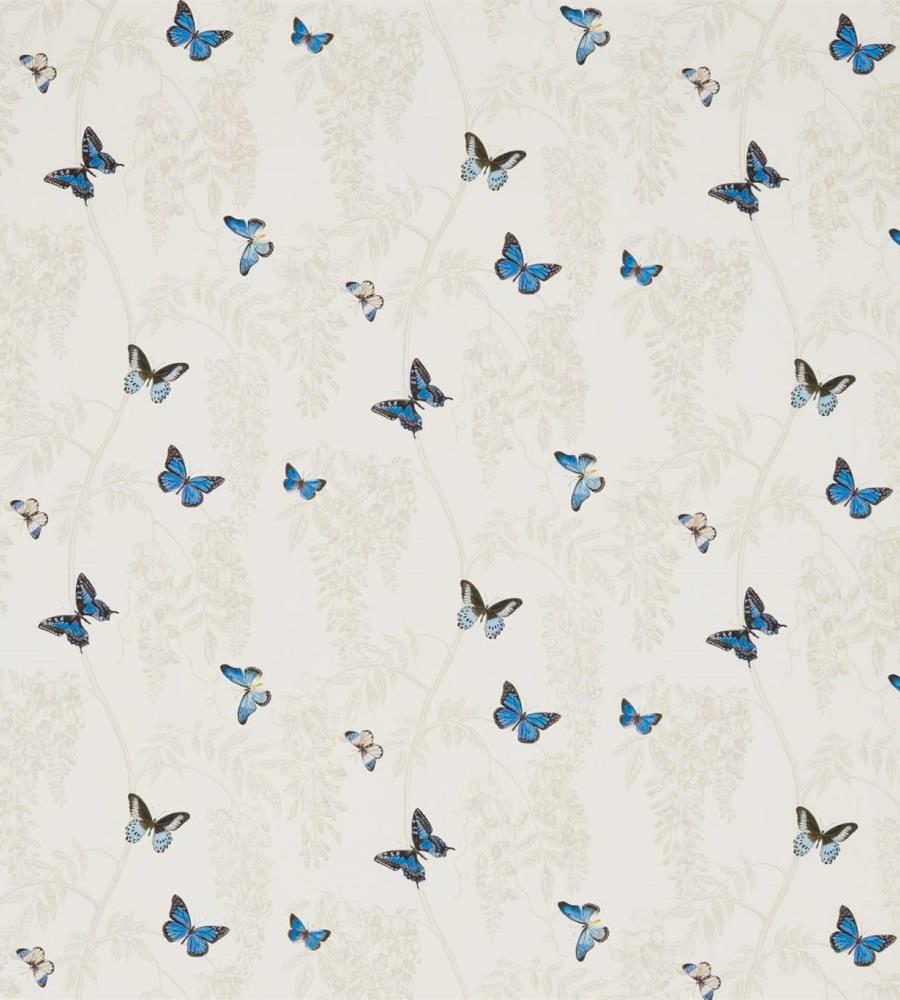 Sanderson Wisteria & Butterfly Cobalt/Chalk pillangó mintás textil. A Sanderson Woodland Walk textil kollekció aprólékosan kidolgozott és kézzel festett mintákból áll össze, melyeket az erdei kirándulások ihletettek. Ebben a kollekcióban gyönyörű virág, levél és erdő mintás textileket és hímzett szöveteket találhatunk számos árnyalatban. A Woodland Walk kollekció különlegessége a gyönyörű madár mintás Woodland Chorus textil. A Sanderson a textilekhez illő tapétákat is ajánl. Az anyagok alkalmazhatóak sötétítő és dekor függöny varrásra, takaró és díszpárna készítésre, valamint bútorkárpitozásra. A gazdag történelemmel rendelkező Sanderson a világ egyik legnevesebb textil és tapéta gyártója, amely rendelkezik az angol királyi udvar hivatalos beszállítója címmel. Leginkább a nyomott mintás tapétáiról és textiljeiről híres, de kínálatában prémium minőségű szőnyegek és lakás kiegészítők is találhatóak.