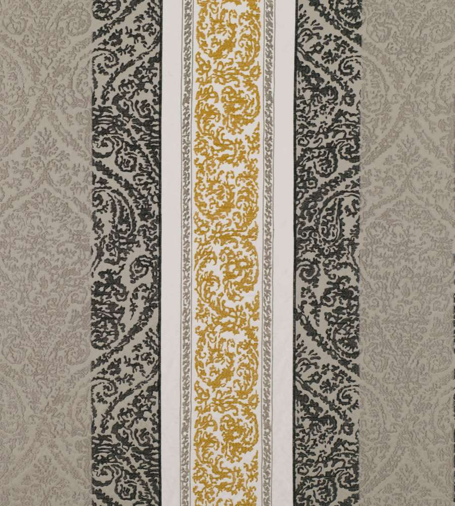 Black Edition Pasha Turmeric barokk mintás textil. A Black Edition Astratto luxus textil kollekció modern és újragondolt klasszikus függöny és kárpit anyagokból áll össze. Ebben a kollekcióban virágos, geometrikus, kasmír és absztrakt textileket tálalhatunk. Az anyagok alkalmazhatóak sötétítő és dekor függöny varrásra, takaró és díszpárna készítésre, valamint bútorkárpitozásra. A Black Edition Astratto textilekhez színben és stílusban hozzá illeszkedő tapétákat is tudunk ajánlani. A Black Edition a Romo Group egyik legexkluzívabb márkája, amely magába foglalja a luxust és a modern eleganciát. Kifinomult textúrájú textiljei és tapétai a legmodernebb technológiával készülnek. A Romo Group kínálata 6 márkából áll - a Black Edition - exkluzív, modern stílusú tapéták és textilek, Zinc Textile - glamour, csillámos luxus tapéták és textilek, Mark Alexander - exkluzív függöny és kárpit anyagok visszafogott, nyugodt árnyaltatokban, Romo - minőségi textilek és tapéták modern színpompás árnyalatokban, Villa Nova és Kirkby Design - kortárs és játékos tapéta és textil kollekciók.
