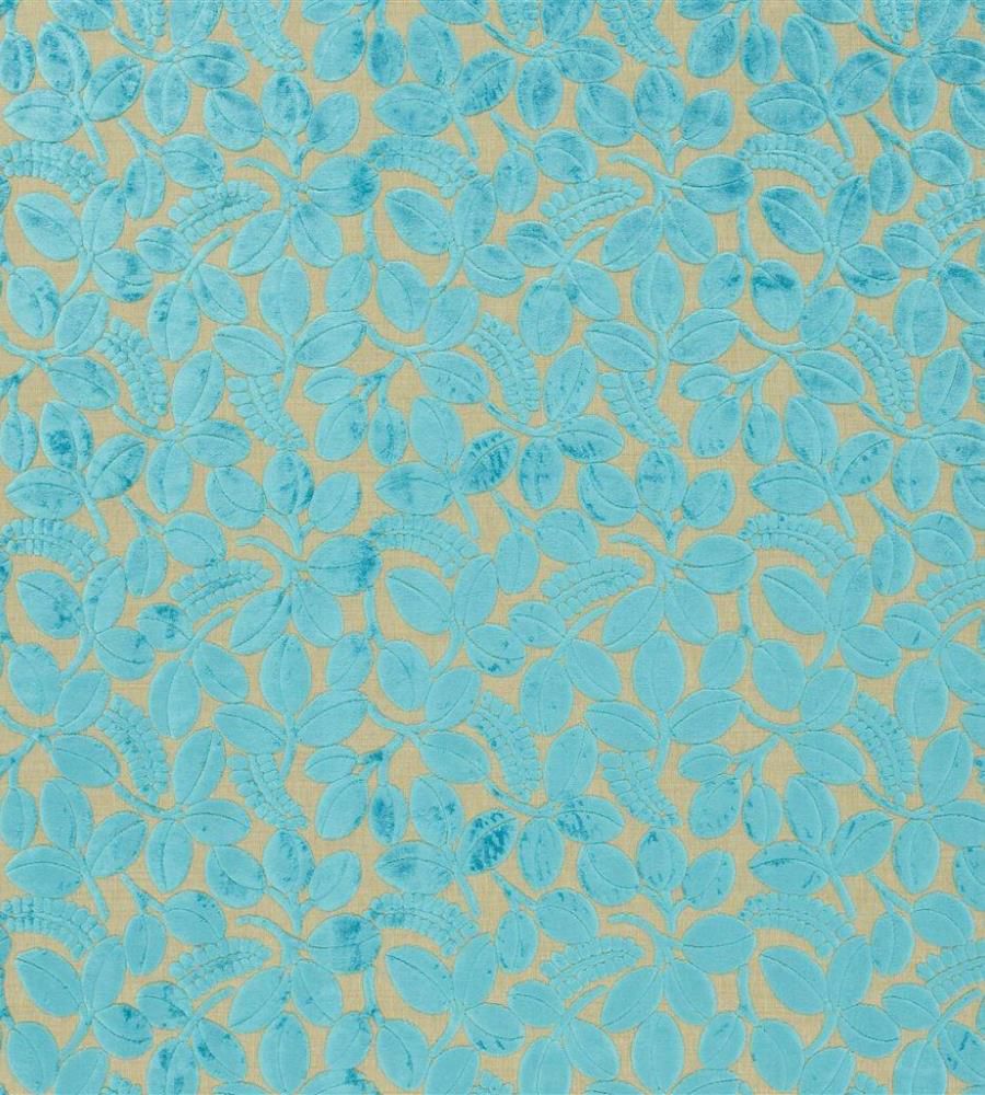 Designers Guild Calaggio Turquoise levélmintás textil A Designers Guild Savio kollekció gyönyörű levél mintás és csíkos nyírtbársony anyagokból áll, melyek számos visszafogott árnyalatban, illetve élénk színben is rendelhetőek. A textilek alkalmazhatóak sötétítő és dekor függöny varrásra, takaró és díszpárna készítésre, valamint bútorkárpitozásra. A Designers Guild lakberendezési márka alapítója a híres angol tervező Tricia Guild, a látványos minták és élénk színek nagymestere. Színpompás függöny és kárpit anyagai, tapétái és szőnyegei hatalmas népszerűségnek örvendenek világszerte belsőépítészek és lakberendezők körében.