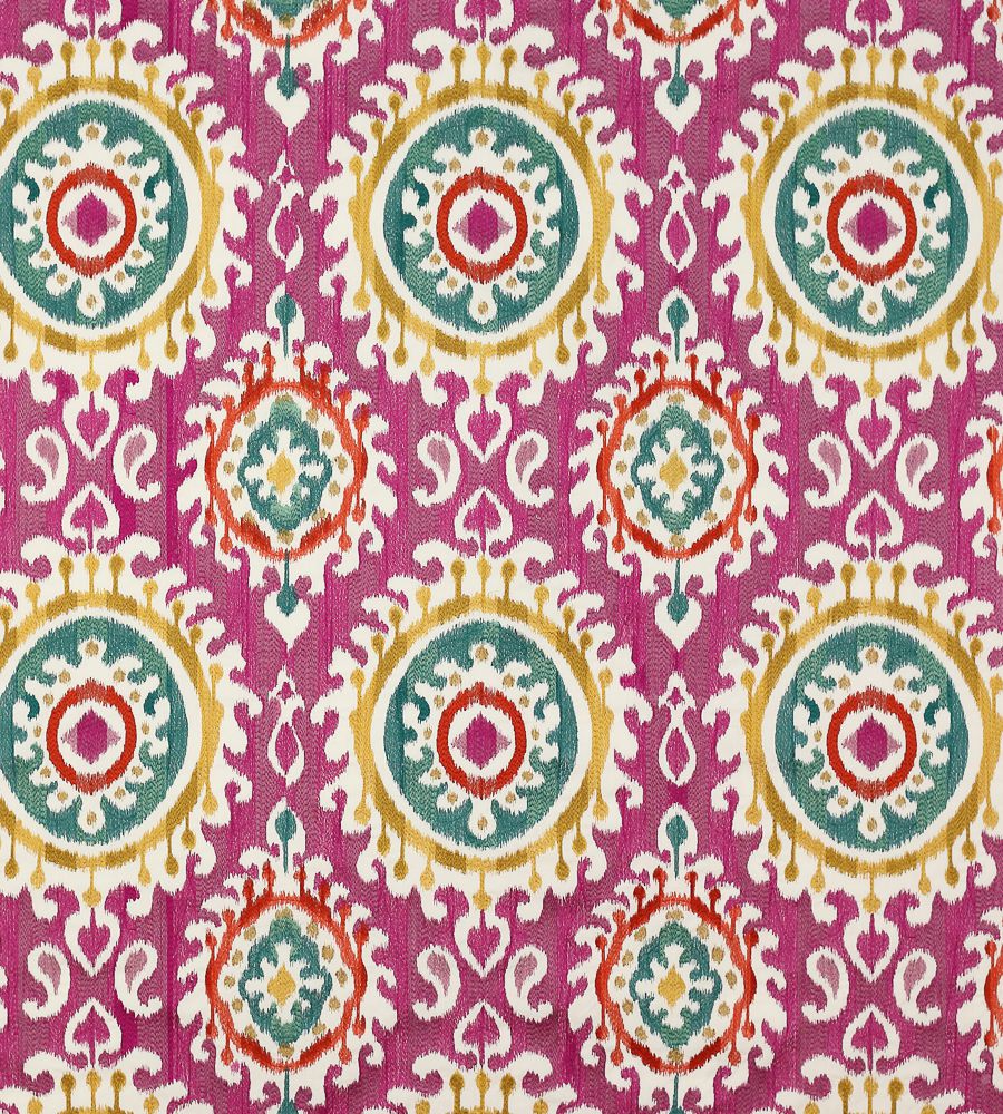 Manuel Canovas Daya Fuchsia ikat mintás textil. Manuel Canovas a látványos minták és élénk színek mestere, számos lakástextil és tapéta kollekció megálmodója. A kezdetek óta mindegyik kollekciója hatalmas sikert arat. Jellemző színeinek és egzotikus mintáinak köszönhetően a stílusa utánozhatatlan és azonnal felismerhető. Manuel Canovas a neves angol Colefax & Fowler gyártóval működik együtt, aki világszerte forgalmazza a szöveteit és a tapétait.
