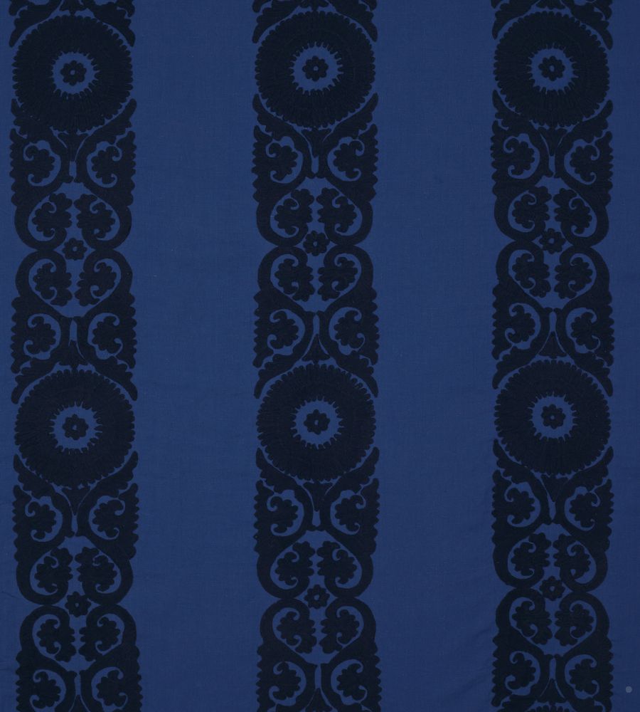 Manuel Canovas Rina Indigo csíkos textil. Manuel Canovas a látványos minták és élénk színek mestere, számos lakástextil és tapéta kollekció megálmodója. A kezdetek óta mindegyik kollekciója hatalmas sikert arat. Jellemző színeinek és egzotikus mintáinak köszönhetően a stílusa utánozhatatlan és azonnal felismerhető. Manuel Canovas a neves angol Colefax & Fowler gyártóval működik együtt, aki világszerte forgalmazza a szöveteit és a tapétait.