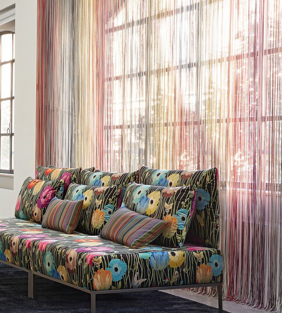 Missoni Home Vasto Sheer Nero Multicolor csíkos textil. A Missoni Home márka jól ismert cikkcakkjai és színátmenetes mintái elengedhetetlen elemévé váltak az exkluzív lakberendezés világának. A Missoni színek életvidám varázsa, a geometriák játéka garantáltan megteremti a kellő hangulatot. Cégünk a Missoni Home függöny anyagokon és bútorszöveteken kívül, számos prémium és exkluzív kategóriájú textil, tapéta és szőnyeg márka hivatalos magyarországi forgalmazója. A teljes kínálatot a budapesti üzletünkben lehet megtekinteni.