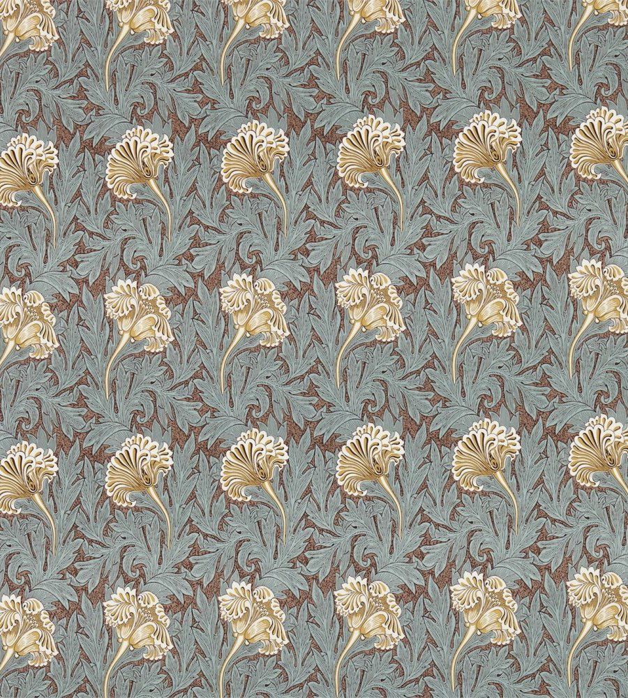 William Morris Tulip Green/Gold virágmintás textil. Az Archive III textil kollekció a William Morris minta archívumból lett létrehozva. Az eredeti minták között megtalálhatjuk a látványos The Brook dekort, melyet a középkori gobelinek ihletettek. Ez a szarvas mintás textil viszkóz, len és bársony alapon is rendelhető. A William Morris kínálatában a textilekhez illő tapétákat is találhatunk. Az anyagok alkalmazhatóak sötétítő és dekor függöny varrásra, bútorkárpitozásra, illetve takaró és díszpárna készítésre. William Morris az angol enteriőr design ikonikus alakja, aki elsősorban a nyomott mintás textiljeiről és a tapétáiról híres. Különleges stílusának köszönhetően textil, tapéta és szőnyeg kollekciói azonnal felismerhetők és már több mint 150 éve nagy népszerűségnek örvendenek világszerte. A William Morris textilek, tapéták és szőnyegek tökéletesen párosíthatóak egymással, illetve külön-külön is díszei lehetnek bármely enteriőrnek.