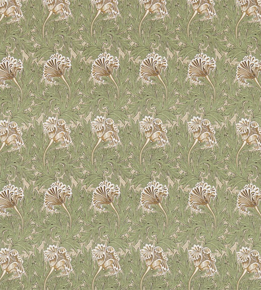 William Morris Tulip Bullrush/Slate virágmintás textil. Az Archive III textil kollekció a William Morris minta archívumból lett létrehozva. Az eredeti minták között megtalálhatjuk a látványos The Brook dekort, melyet a középkori gobelinek ihletettek. Ez a szarvas mintás textil viszkóz, len és bársony alapon is rendelhető. A William Morris kínálatában a textilekhez illő tapétákat is találhatunk. Az anyagok alkalmazhatóak sötétítő és dekor függöny varrásra, bútorkárpitozásra, illetve takaró és díszpárna készítésre. William Morris az angol enteriőr design ikonikus alakja, aki elsősorban a nyomott mintás textiljeiről és a tapétáiról híres. Különleges stílusának köszönhetően textil, tapéta és szőnyeg kollekciói azonnal felismerhetők és már több mint 150 éve nagy népszerűségnek örvendenek világszerte. A William Morris textilek, tapéták és szőnyegek tökéletesen párosíthatóak egymással, illetve külön-külön is díszei lehetnek bármely enteriőrnek.