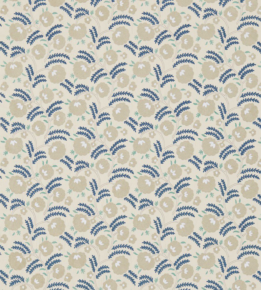 William Morris Wightwick Embroidery Ecru-Mineral Blue textil