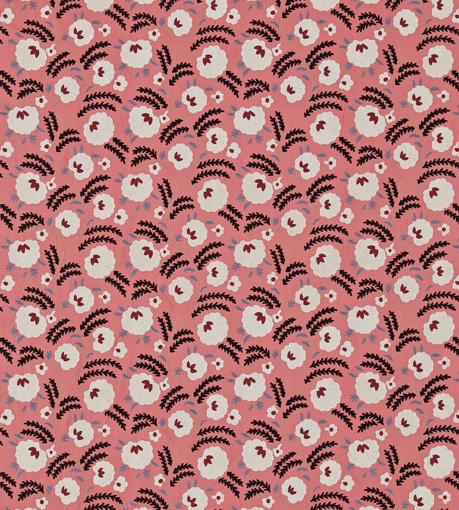 William Morris Wightwick Embroidery Coral-Charcoal virágmintás textil
