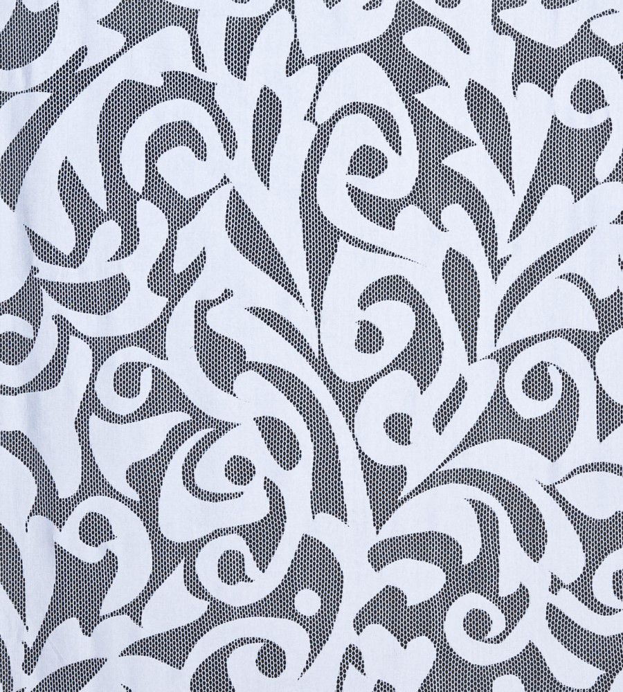 MYB Textiles Large Jane White absztrakt mintás fényáteresztő függöny textil. Az MYB Textiles Abercromby kollekció klasszikus virágos, barokk, kasmír dekorokat, illetve modern stílusú geometrikus csipke textileket tartalmazz. A fényáteresztő függöny anyagok dupla szélesek és folyóméterenként rendelhetőek. MYB Textiles a kivételes szépségű skót pamut csipke világhírű gyártója. A termék kínálatában sokféle modern és klasszikus fényáteresztő függöny anyag, illetve hagyományos pamut csipke függöny található.