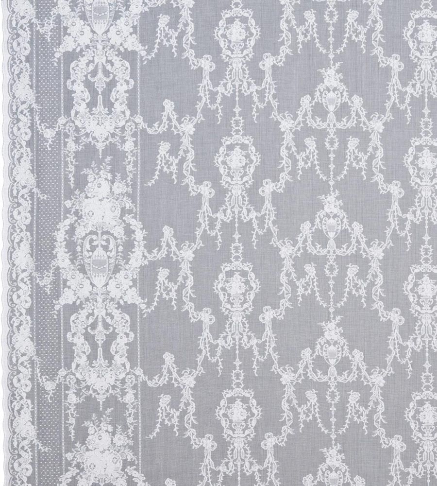 MYB Textiles Linda Ivory barokk mintás fényáteresztő függöny textil. A Brodie kollekció az Morton, Young & Borland egyedülálló klasszikus minta archívumából lett létrehozva. Ebben a kollekcióban klasszikus mintázatú barokk és virágos fényáteresztő függöny anyagokat találhatunk, melyek natúr árnyalatokban, illetve hatásos fekete és szürke színekben rendelhetőek. A fényáteresztő textilek 175 cm szélesek és folyóméterenként vásárolhatóak. MYB Textiles a kivételes szépségű skót pamut csipke világhírű gyártója. A termék kínálatában sokféle modern és klasszikus fényáteresztő függöny anyag, illetve hagyományos pamut csipke függöny található.