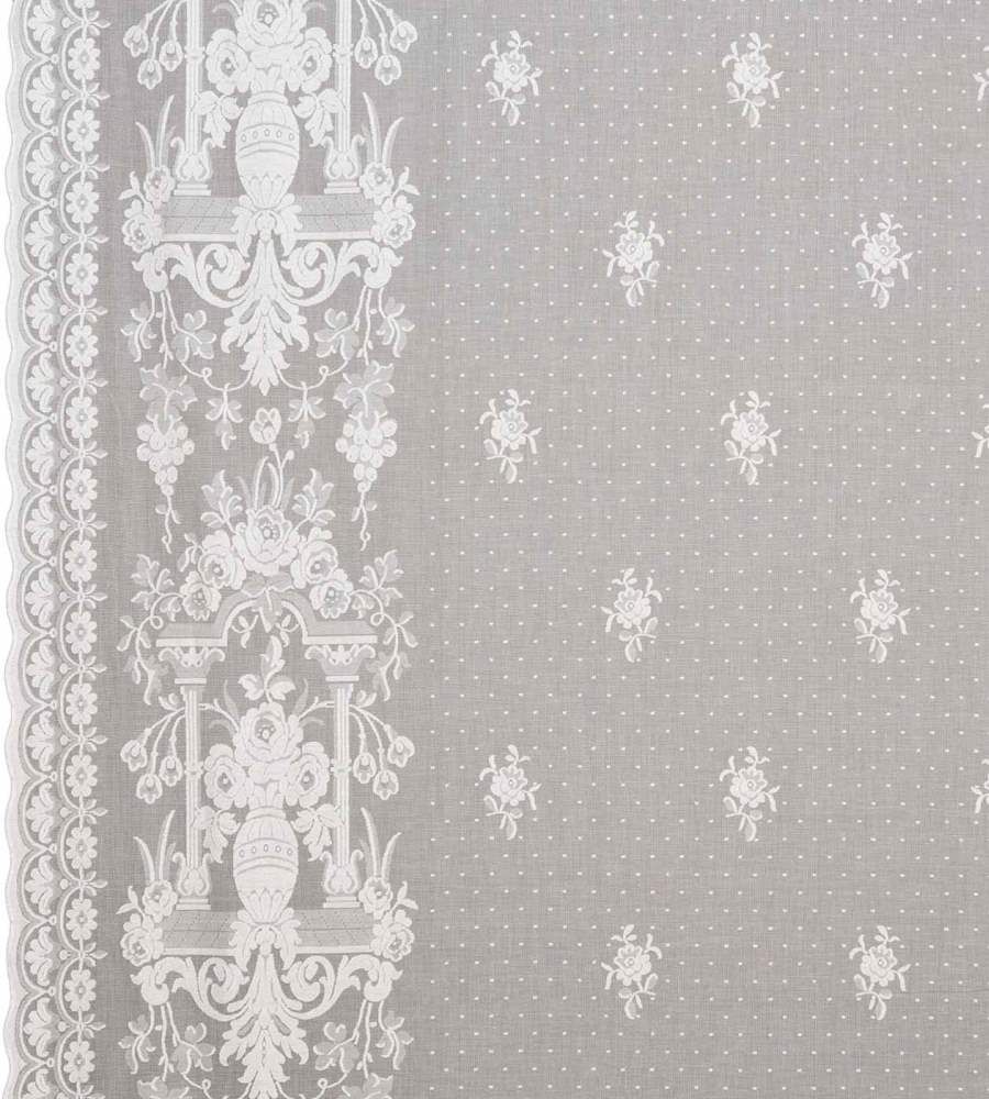MYB Textiles Oban Natural barokk mintás fényáteresztő függöny textil. A Brodie kollekció az Morton, Young & Borland egyedülálló klasszikus minta archívumából lett létrehozva. Ebben a kollekcióban klasszikus mintázatú barokk és virágos fényáteresztő függöny anyagokat találhatunk, melyek natúr árnyalatokban, illetve hatásos fekete és szürke színekben rendelhetőek. A fényáteresztő textilek 175 cm szélesek és folyóméterenként vásárolhatóak. MYB Textiles a kivételes szépségű skót pamut csipke világhírű gyártója. A termék kínálatában sokféle modern és klasszikus fényáteresztő függöny anyag, illetve hagyományos pamut csipke függöny található.