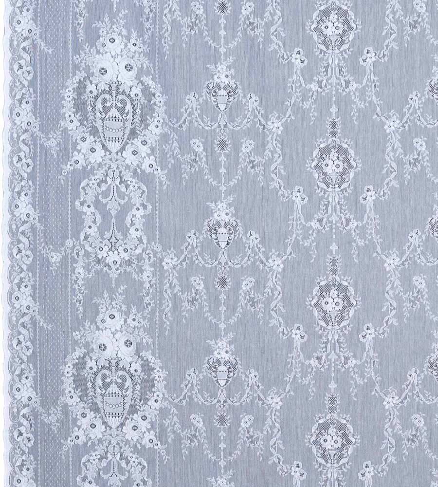 MYB Textiles Lydia White barokk mintás csipke függöny textil. Az MYB Textiles Fraser kollekcióban klasszikus mintázatú barokk, geometrikus és virágos fényáteresztő csipke függöny anyagokat találhatunk, melyek fehér, tört fehér és krém árnyalatokban rendelhetőek. A fényáteresztő textilek folyóméterenként vásárolhatóak. MYB Textiles a kivételes szépségű skót pamut csipke világhírű gyártója. A termék kínálatában sokféle modern és klasszikus fényáteresztő függöny anyag, illetve hagyományos pamut csipke függöny található.