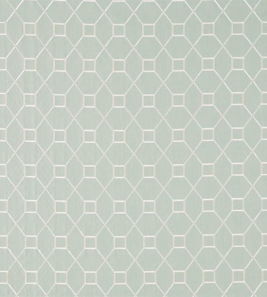 Sanderson Baroque Trellis Wedgwood/Chalk geometriai mintás textil. A Sanderson Art of the Garden textil kollekciót az angol kertészet iránti szeretet határozza meg. A kollekció egzotikus virágokból, levél mintákból, geometriai dekorokból és a madaras textilekből áll össze, melyek több árnyalatban rendelhetőek. Az Art of the Garden kollekció különlegessége az ananász mintás Pineapple Royale szövet. A Sanderson a textilekhez illő tapétákat is kínál. Az anyagok alkalmazhatóak sötétítő és dekor függöny varrásra, takaró és díszpárna készítésre, valamint bútorkárpitozásra. A gazdag történelemmel rendelkező Sanderson a világ egyik legnevesebb textil és tapéta gyártója, amely rendelkezik az angol királyi udvar hivatalos beszállítója címmel. Leginkább a nyomott mintás tapétáiról és textiljeiről híres, de kínálatában prémium minőségű szőnyegek és lakás kiegészítők is találhatóak.