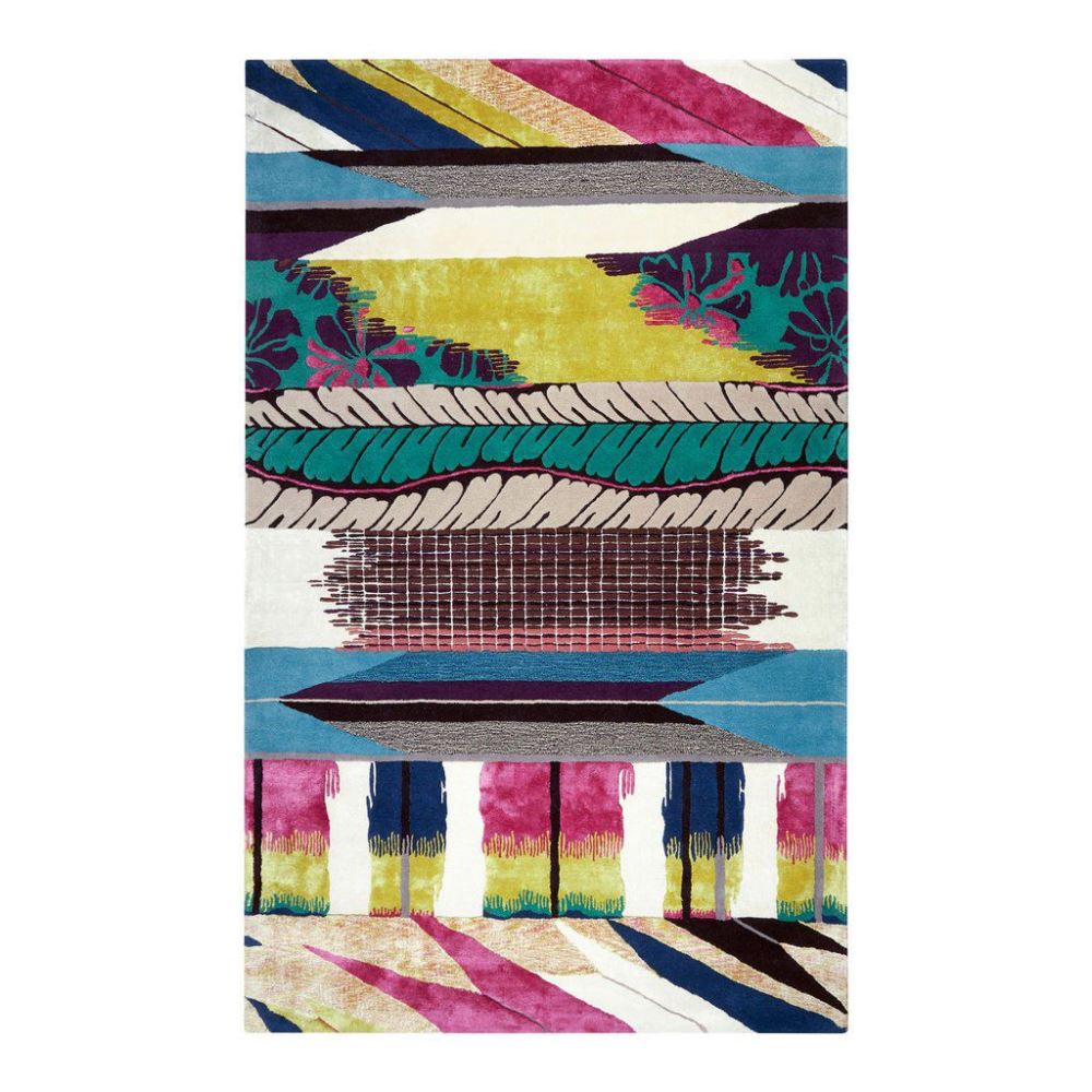Christian Lacroix Geisha Prisme absztrakt mintás gyapjú szőnyeg. Christian Lacroix a világhírű francia divattervező, a látványos minták és élénk színek mestere, nemrég nyitott a lakberendezés felé káprázatos lakástextil és tapéta kollekcióival. Az első dekorok bemutatása óta mindegyik kollekciója hatalmas sikert arat. Merész színeinek és egzotikus mintáinak köszönhetően a stílusa utánozhatatlan és azonnal felismerhető. Christian Lacroix a híres angol Designers Guild-del működik együtt, aki világszerte forgalmazza a szőnyegeit.