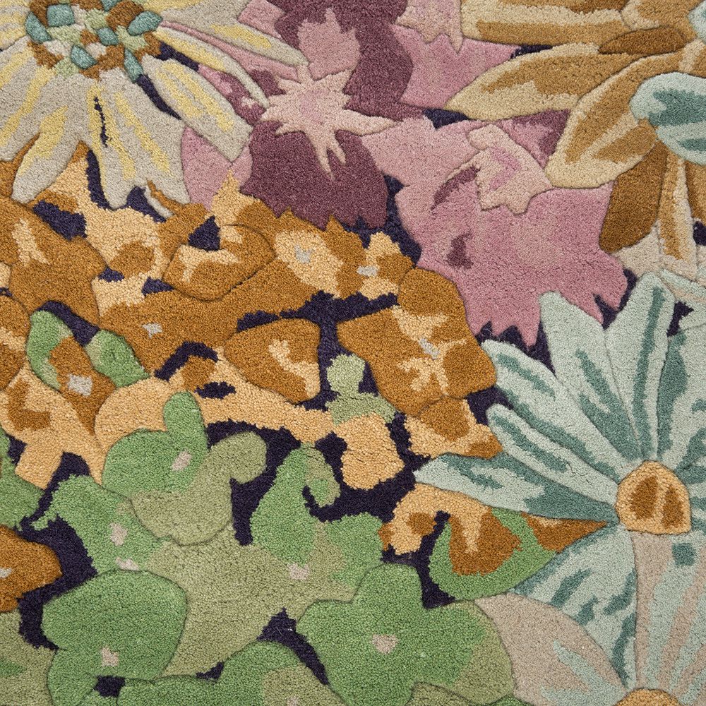 Missoni Home Luanda 120 cm kör alakú virágmintás szőnyeg. A Missoni Home márka jól ismert cikkcakkjai és színátmenetes mintái elengedhetetlen elemévé váltak a minőségi lakberendezés világának. A Missoni színek életvidám varázsa, a geometriák játéka garantáltan megteremti a kellő varázst. Cégünk a Missoni Home szőnyegeken kívül, számos prémium és exkluzív kategóriájú textil, tapéta és szőnyeg márka hivatalos magyarországi forgalmazója. A teljes kínálatot a budapesti üzletünkben lehet megtekinteni.