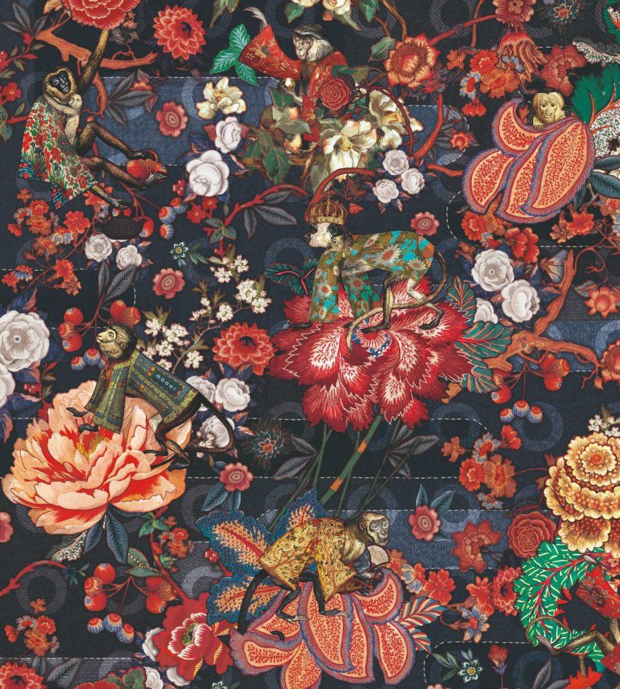 Moooi Wallcoverings Rendezvous Tokyo Blue Indigo virágmintás tapéta.