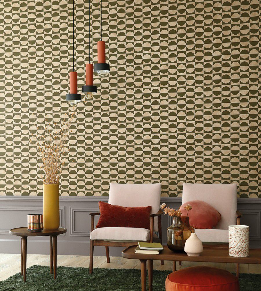 Casamance Circles Kaki geometriai mintás tapéta. A francia Casamance kínálata design vinyl tapétákból, függöny anyagokból és bútorkárpitokból áll. A Casamance stílusa könnyen felismerhető - az időtálló klasszikustól a progresszív modernig, mindig letisztultan elegáns és igényes. Cégünk a Casamance tapétákon kívül, számos prémium és exkluzív kategóriájú textil, tapéta és szőnyeg márka hivatalos magyarországi forgalmazója.