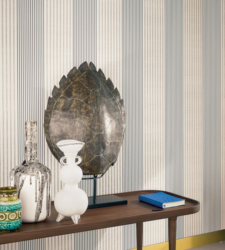Casamance Filbert Marine csíkos tapéta. A francia Casamance kínálata design vinyl tapétákból, függöny anyagokból és bútorkárpitokból áll. A Casamance stílusa könnyen felismerhető - az időtálló klasszikustól a progresszív modernig, mindig letisztultan elegáns és igényes.