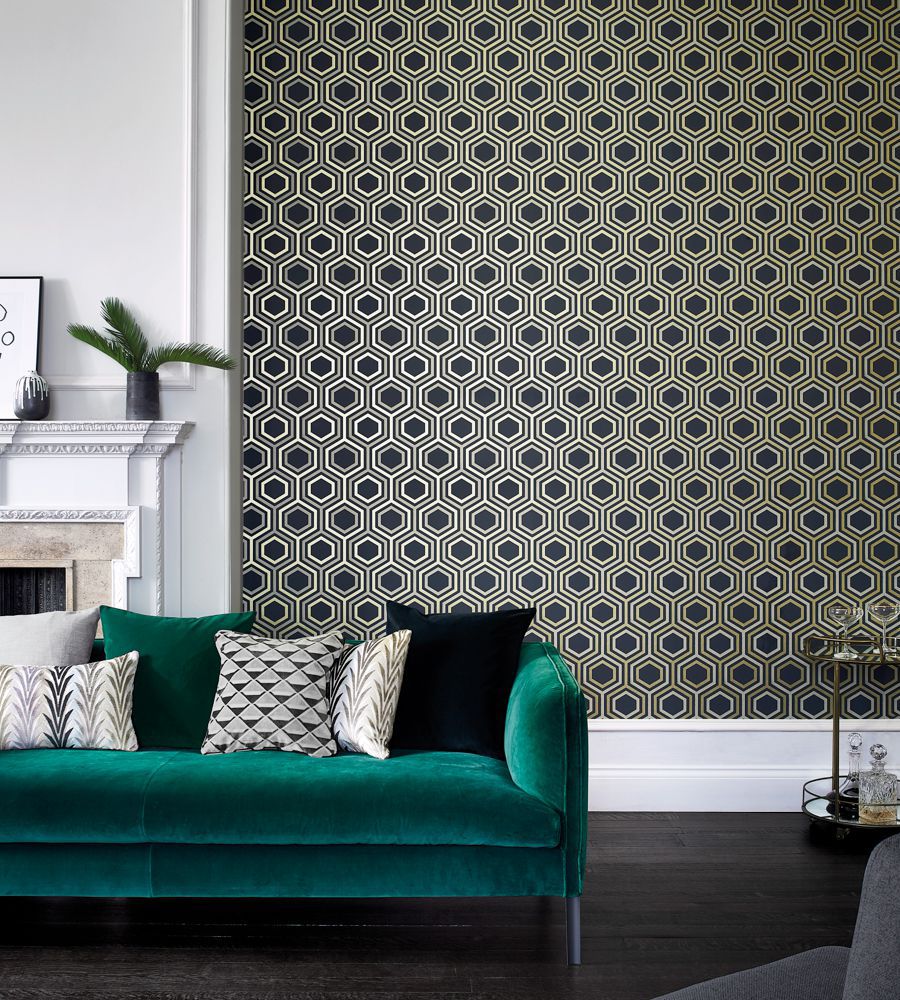 Harlequin Selo Ebony-Gold geometriai mintás tapéta. Minőségi, természetes anyagok, merész színek és design jellemzik a Harlequin tapétákat és textileket, melyek számos modern stílusú enteriőrbe passzolnak és tökéletesen párosíthatóak a márka szőnyeg kínálatával. A Harlequin színpompás függöny és kárpit anyagai, tapétái és szőnyegei hatalmas népszerűségnek örvendenek világszerte belsőépítészek és lakberendezők körében. Cégünk a Harlequin tapétákon kívül, számos prémium és exkluzív kategóriájú textil, tapéta és szőnyeg márka hivatalos magyarországi forgalmazója.