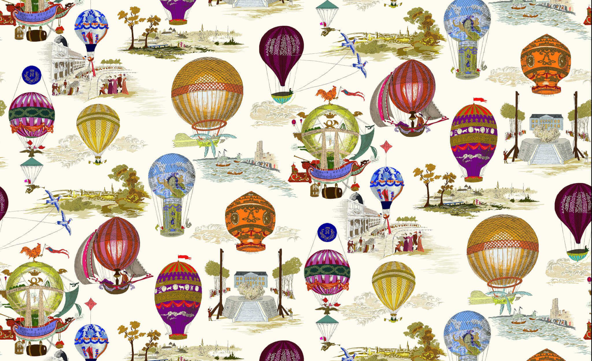 Pierre Frey FP431002 Les aeronefs Multicolore hőlegballon mintás luxus tapéta