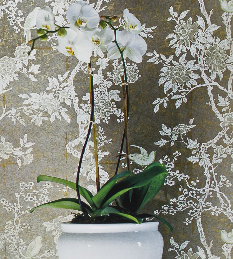 Ralph Lauren Marlowe Floral Sterling madár mintás tapéta. A Signature Papers III tapéta kollekció a Ralph Lauren ikonikus mintáinak a válogatása. Ebben a kollekcióban számos árnyalatban láthatjuk a Ralph Lauren virágos, madaras, kockás, csíkos és kasmír mintás tapétáit. A tapétákhoz színben és stílusban hozzá illeszkedő bútorszövetet és függöny anyagot is tudunk ajánlani. Az amerikai Ralph Lauren márka nem csak a divatvilágban híres, hanem számos lakberendezési kollekciójával is rendelkezik. A Ralph Lauren prémium minőségű tapéták és textilek tükrözik a márka klasszikus amerikai stílusát. Ralph Lauren a híres angol Designers Guild gyártóval működik együtt, aki Európában forgalmazza a szöveteit és a tapétait.