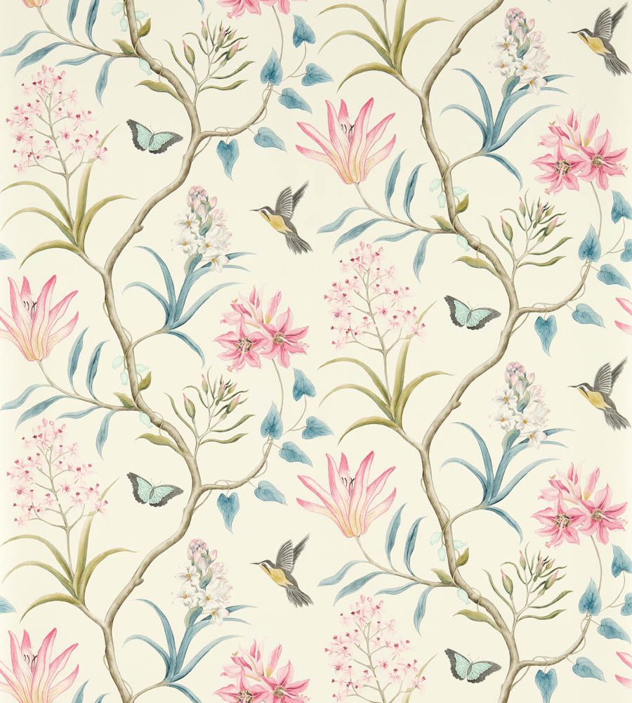 Sanderson Clementine Dusky Pink madár mintás tapéta. A Sanderson Voyage of Discovery tapéta kollekciót az egzotikus utazások ihlették. A kollekció antik térképekből, trópusi stílusú pálmalevelekből, magnolia virágokból, korallokból és madár mintás tapétákból áll össze, melyek több árnyalatban is rendelhetőek. A Voyage of Discovery tapéta kollekció különlegessége a látványos Picture Gallery dekor, madarakkal, pillangókkal és levelekkel. A Sanderson kínálatában a tapétákhoz illő függöny anyagot és bútorszövetet is találhatunk. A gazdag történelemmel rendelkező Sanderson a világ egyik legnevesebb textil és tapéta gyártója, amely rendelkezik az angol királyi udvar hivatalos beszállítója címmel. Leginkább a nyomott mintás tapétáiról és textiljeiről híres, de kínálatában prémium minőségű szőnyegek és lakás kiegészítők is találhatóak.