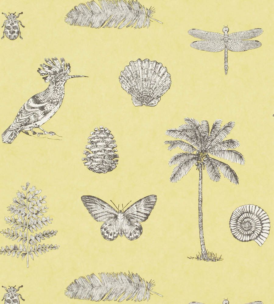 Sanderson Cocos Yellow/Charcoal levél mintás tapéta. A Sanderson Voyage of Discovery tapéta kollekciót az egzotikus utazások ihlették. A kollekció antik térképekből, trópusi stílusú pálmalevelekből, magnolia virágokból, korallokból és madár mintás tapétákból áll össze, melyek több árnyalatban is rendelhetőek. A Voyage of Discovery tapéta kollekció különlegessége a látványos Picture Gallery dekor, madarakkal, pillangókkal és levelekkel. A Sanderson kínálatában a tapétákhoz illő függöny anyagot és bútorszövetet is találhatunk. A gazdag történelemmel rendelkező Sanderson a világ egyik legnevesebb textil és tapéta gyártója, amely rendelkezik az angol királyi udvar hivatalos beszállítója címmel. Leginkább a nyomott mintás tapétáiról és textiljeiről híres, de kínálatában prémium minőségű szőnyegek és lakás kiegészítők is találhatóak.