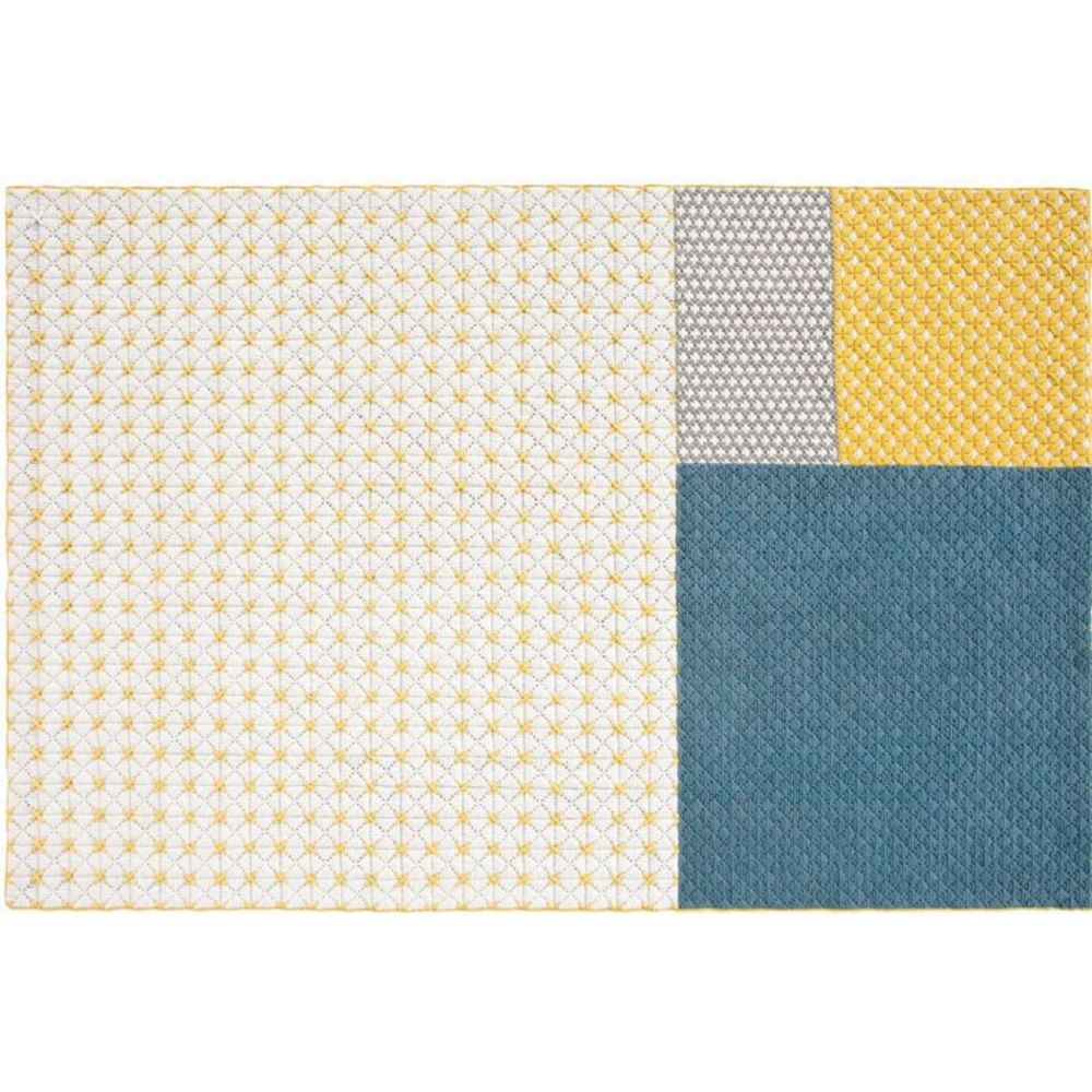 GAN Rugs Silai Blue geometriai mintás szőnyeg. A GAN egy igazán különleges márka, szőnyegei tökéletesen ötvözik a kézi munka egyediségét és a modern trendek világával. Eklektikus minták, vagány színek és egyedi formák jellemzik a GAN szőnyeg kínálatát, amelyben a saját kollekciókon kívül számos neves tervező akolkótása is megtalálható (Patricia Urquiola, Sebastian Herkner, MUT Design, Odosdesign és Raw Edges studiók). Cégünk a GAN Rugs szőnyegeken kívül, számos prémium és exkluzív kategóriájú textil, tapéta és szőnyeg márka hivatalos magyarországi forgalmazója. A teljes kínálatot a budapesti üzletünkben lehet megtekinteni.